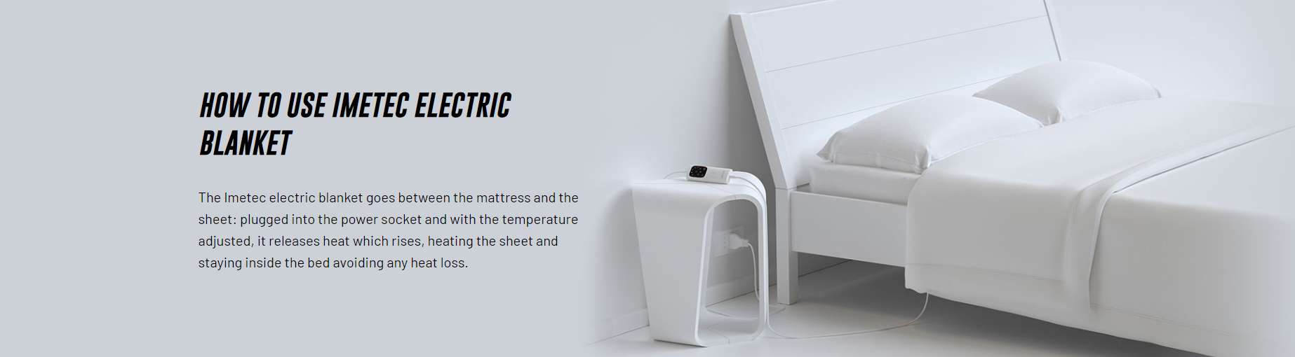 Thanks to advanced software and an innovative digital control system, The Imetec 16738 Adapto Double Overblanket uses all its power to warm up quickly. During the night, it constantly adapts to the natural temperature of the body and the surrounding environment, ensuring the ideal heat for a good night’s sleep.The Luxury Of Getting Into A Warm BedThe Adapto heated over blanket guarantees optimal rest because it creates the ideal climate in your bed and keeps it stable all night, adjusting automatically to your needs.Adapto Patented TechnologyThe new Adapto patented technology ensures fast heating, constant temperature control and maximum safety.Super Soft FabricThe luxury high-quality fabric is finished with a beautiful satin trim and feels soft and comfortable on your skin. It’s perfect for layering over the bed. It's hand and machine-washable.Electro Block Safety SystemThe advanced Electro Block® safety system automatically checks that the product is working properly every time it is switched on and monitors it constantly during night-time use.How To Use Imetec Electric BlanketThe Imetec electric blanket goes between the mattress and the sheet: plugged into the power socket and with the temperature adjusted, it releases heat which rises, heating the sheet and staying inside the bed avoiding any heat loss.