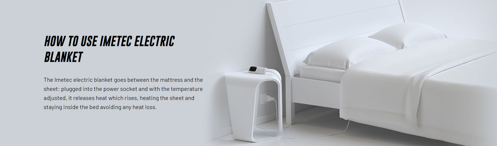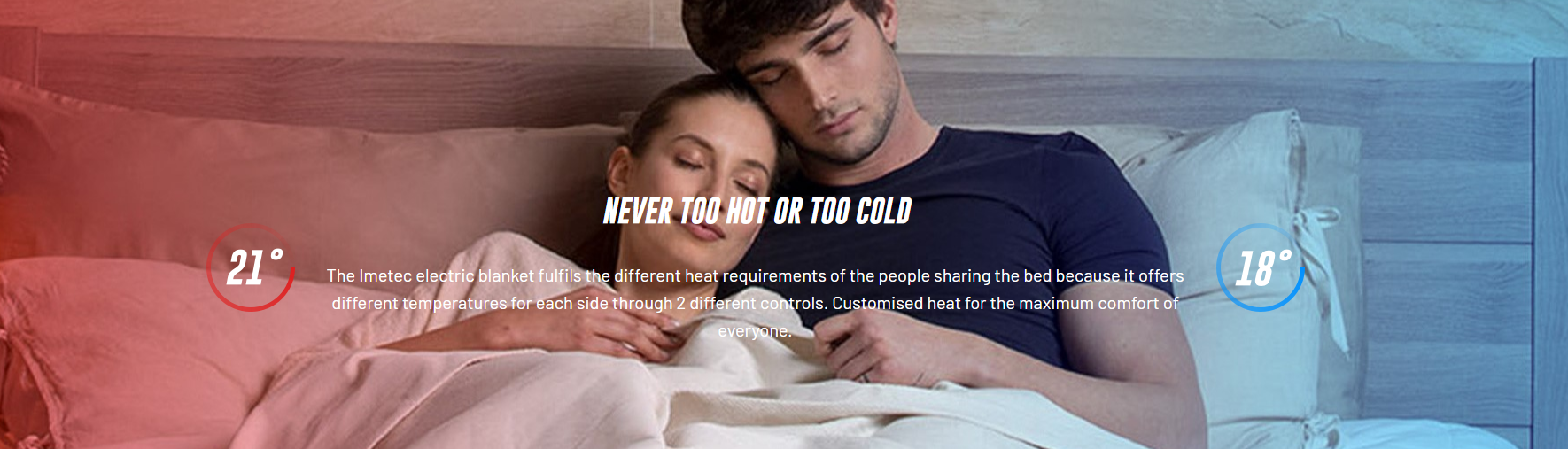 Thanks to advanced software and an innovative digital control system, the mattress cover uses all its power to warm up quickly*. During the night, it constantly adapts to the natural temperature of the body and the surrounding environment, ensuring the ideal heat for a good night’s sleep.* Imetec laboratory tests show that Adapto technology can reach 37 degrees from standard room temperature in just 5 minutes