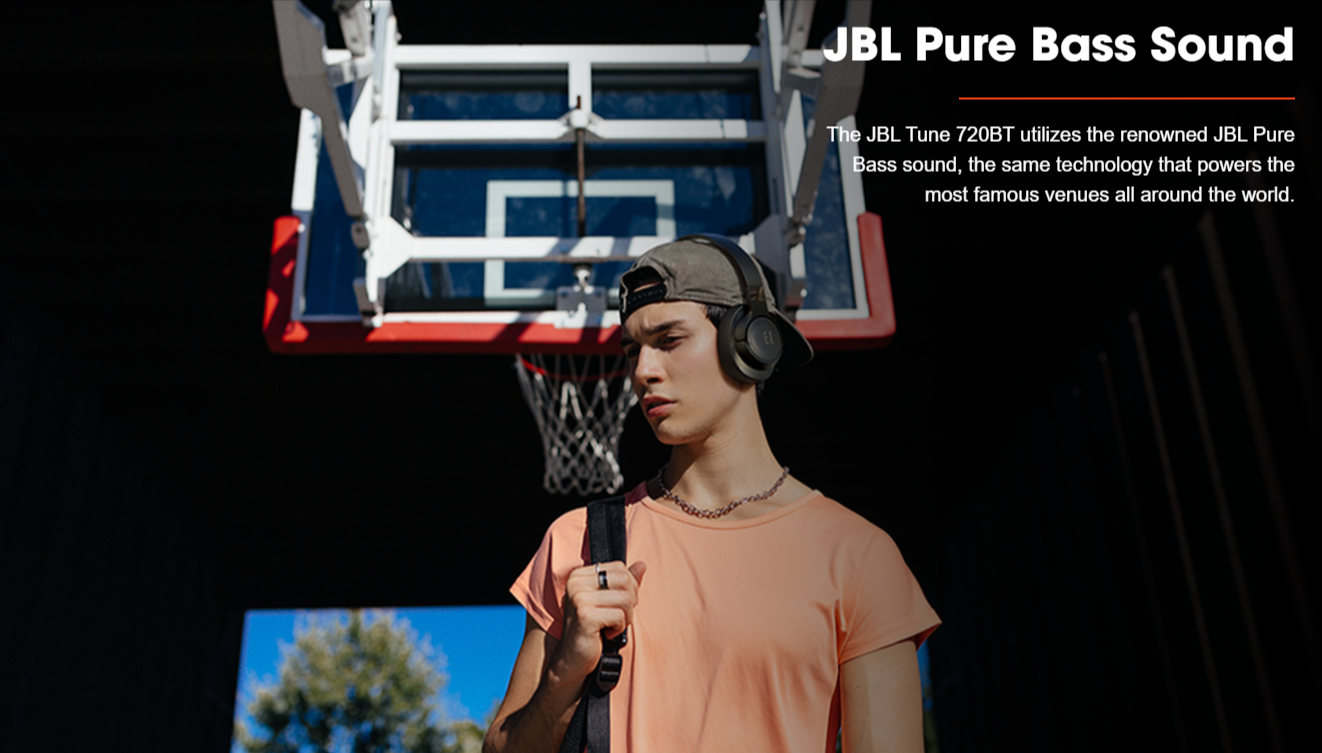 The JBL Tune 720BT headphones stream powerful JBL Pure Bass sound thanks to the latest 5.3 BT technology. Easy to use, these headphones provide up to 76 hours of pure pleasure and an extra 3 hours of battery with just 5 minutes of charge. Download the free JBL Headphones App and customize your sound through the EQ, while Voice Prompts guide you through the headphones features. Manage calls, sound and volume from the earcup, thanks to the convenient button controls. If a call comes in while you are watching a video on another device, the JBL Tune 720BT seamlessly switches to your mobile device, so you never miss a call. Lightweight and comfortable even after hours of listening, the JBL Tune 720BT headphones fold flat in your backpack to follow you everywhere.