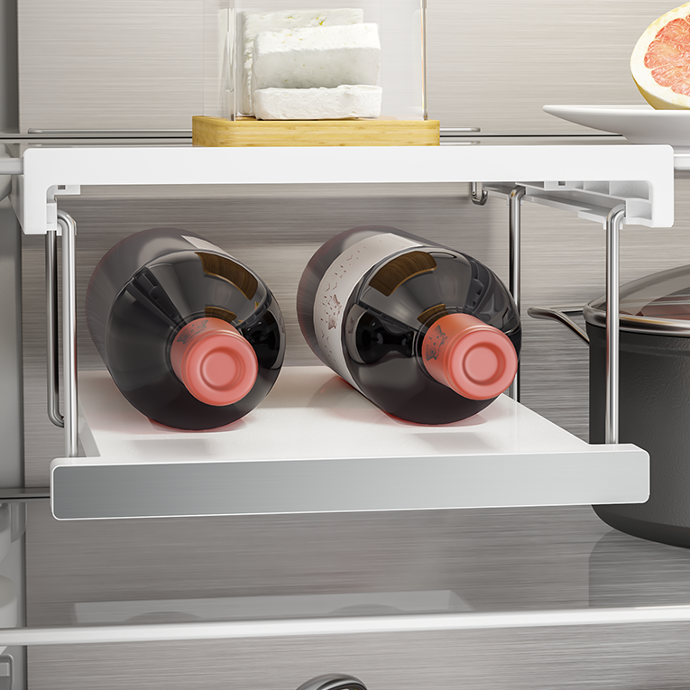 Helping you make the most out of every inch of fridge space, our foldable wine rack solution can be folded down with ease, offering a convenient place to store your wine or larger drink bottles. This handy feature can also be folded out of the way if needed, making more shelf space for your food items.