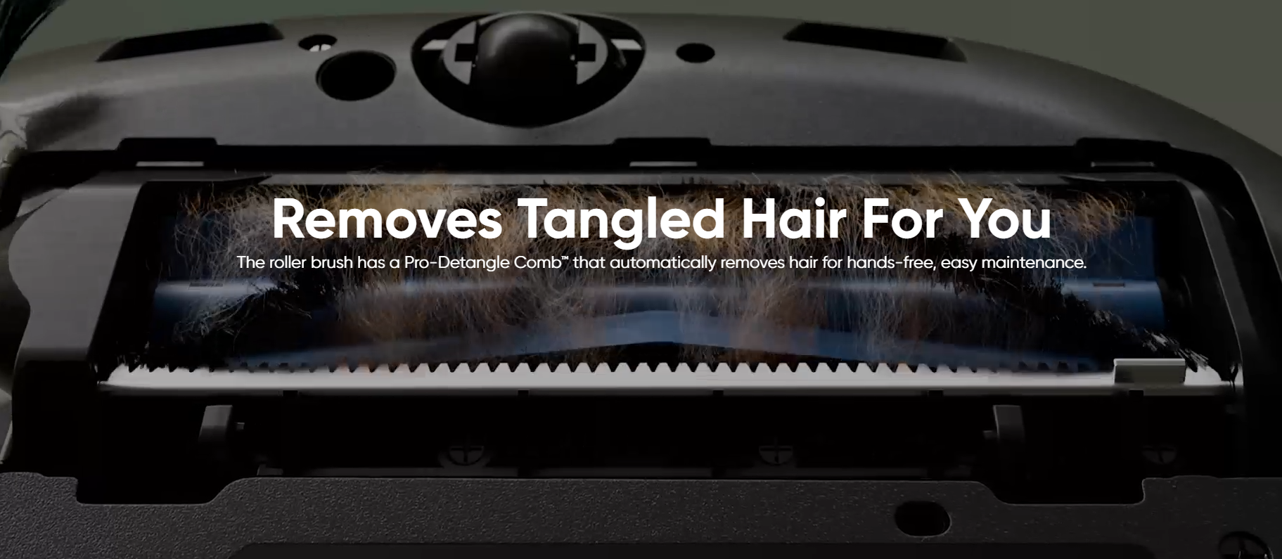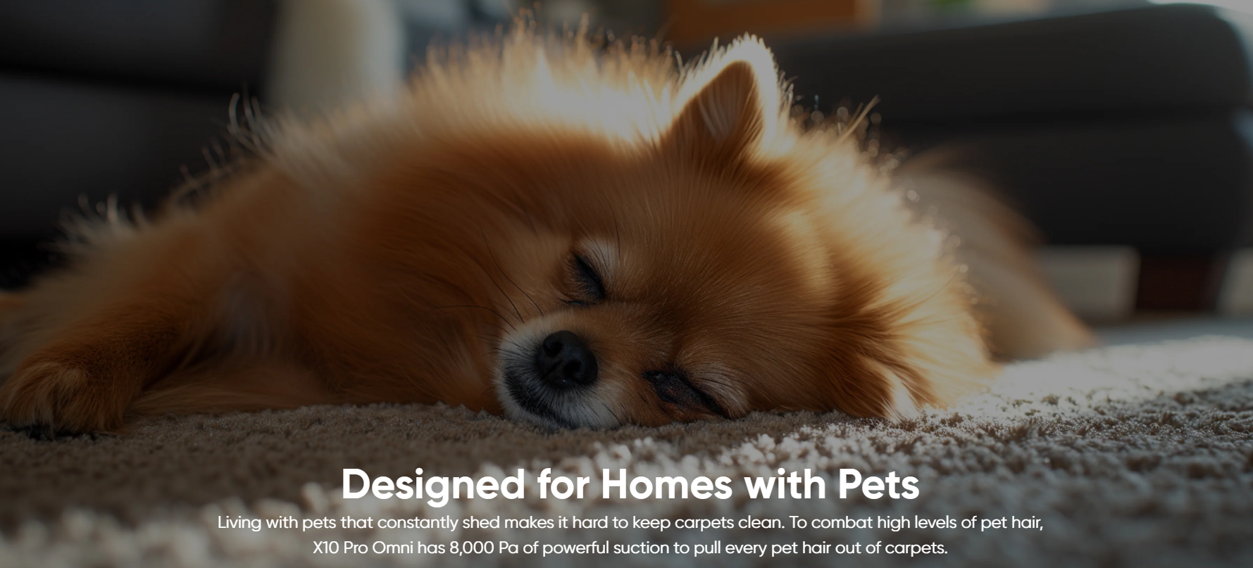 X10 Pro Omni's multi-directional floating roller brush is positioned close to the surface of the carpet. As it spins, the rubber and bristles work together to lift up and remove debris. It's ideal for pet hair, crumbs, and even fine debris and dust from the deepest part of the carpet.