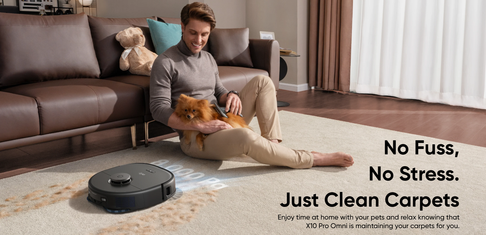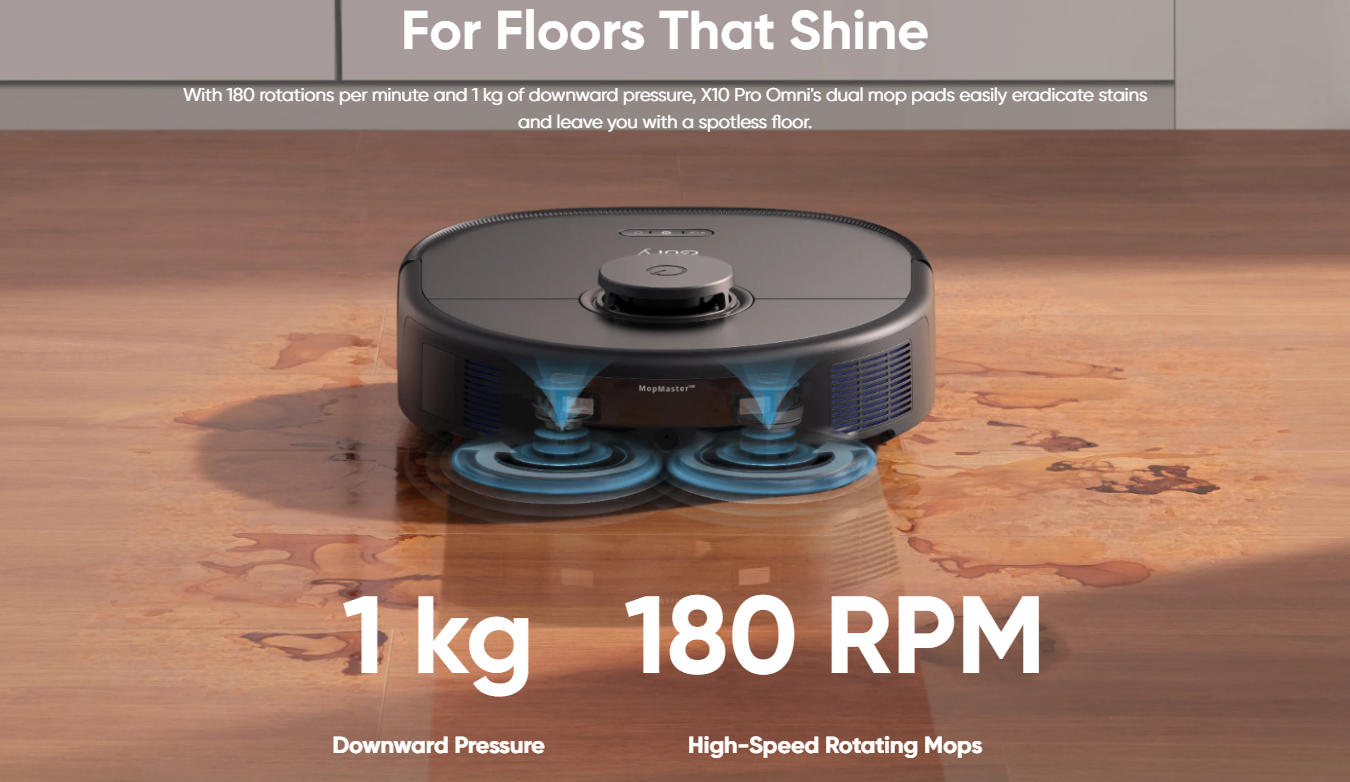 When a carpet is detected, X10 Pro Omni raises its mop by 12 mm so that it can climb onto the carpet and vacuum without soaking it.
