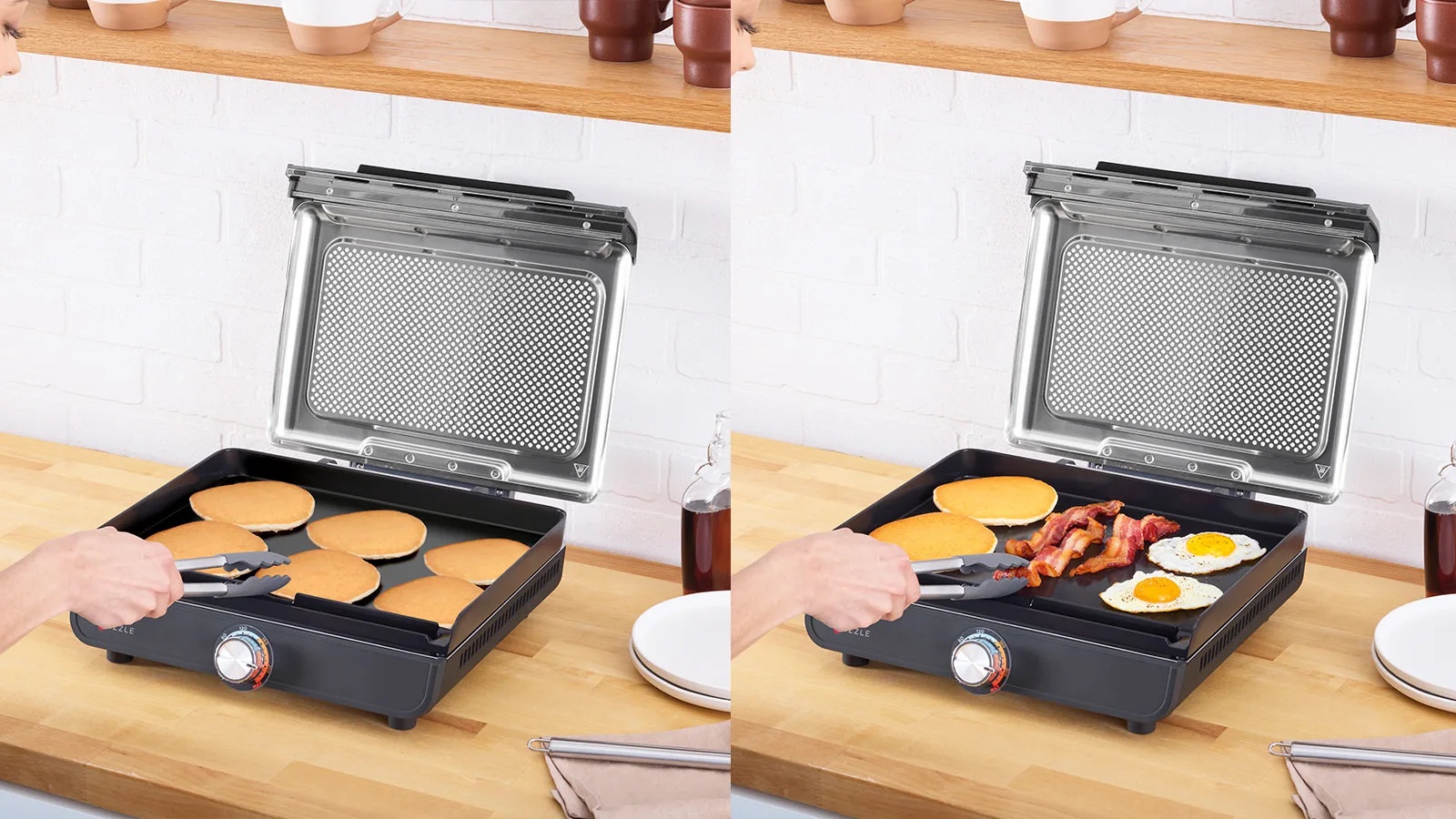 With interchangeable cooking plates, this indoor grill easily takes you from breakfast to dinner.